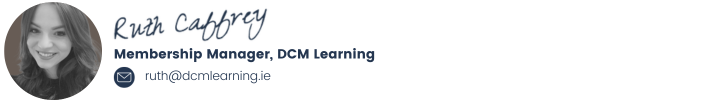 If there is anything you need in the meantime, I am more than happy to help. Please don't be afraid to send me an email at ruth@dcmlearning.ie.