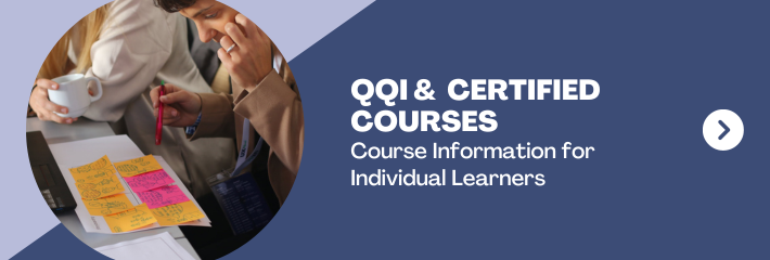 How to Access QQI Courses: With a generous membership discount on our QQI & certified courses, individual learners can choose from a wide range of courses to suit their professional development needs. Our QQI and certified courses are available as online (self-paced) or remote (via zoom) classrooms, giving learners maximum flexibility. Click through to check out our course options and download any of our course brochures.