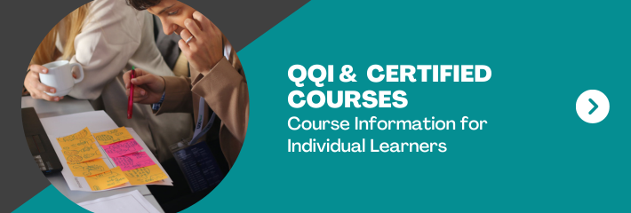 With a generous membership discount on our QQI & certified courses, individual learners can choose from a wide range of courses to suit their professional development needs. Our QQI and certified courses are available as online (self-paced) or remote (via zoom) classrooms, giving learners maximum flexibility. Click through to check out our course options and download any of our course brochures.