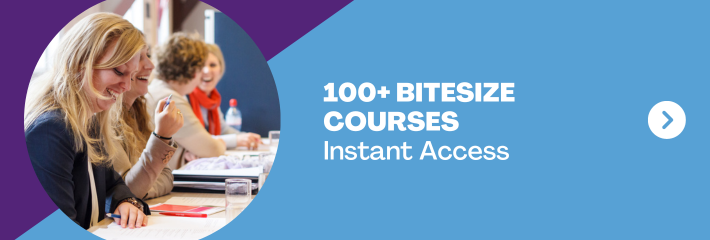 How to Access Bitesize Courses: Designed for minimal impact on your working day, choose from 100's of bitesize courses available for instant access and upskill in a variety of areas. Select the course(s) you want, and you will be brought to the course content page.